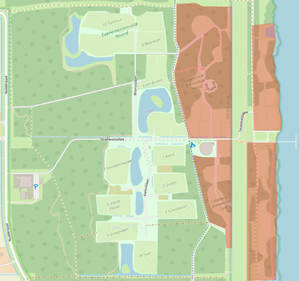 Scoutinglandgoed Zeewolde heeft meer dan 40 kampeervelden. Klik op 1 van de kwadranten van de kaart om de kampeervelden in dat gebied te zien.